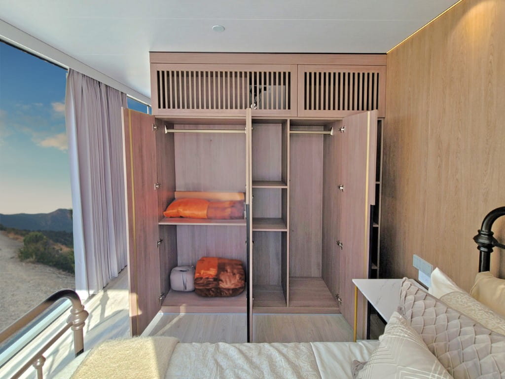 Escape to stunning 270° panoramic views through floor-to-ceiling windows, top-notch insulation, sleep under the stars or wake up to stunning sunrises, and recharge in pure natural surroundings.